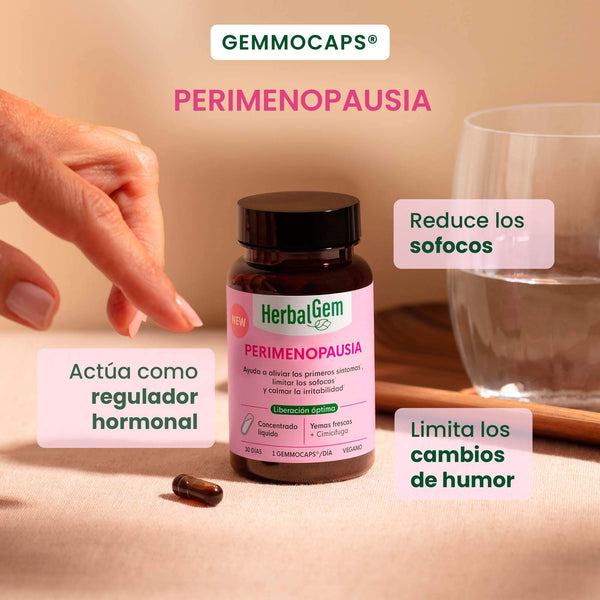 En la perimenopausia, la fórmula GEMMOCAPS Péri-menopausia, asociando Brotes de Manzano, Frambueso y Vid, ayuda a mantener el bienestar femenino y a reducir los signos de incomodidad.